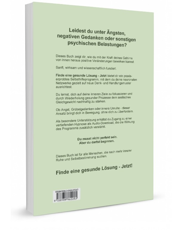 „Finde eine gesunde Lösung – Jetzt!“ ist ein praxiserprobtes Selbsthilfeprogramm, das dir zeigt, wie du mit der Kraft deiner neuronalen Netzwerke innere Ruhe, mentale Stärke und Selbstbestimmung zurückgewinnst. Basierend auf wissenschaftlich fundierten Methoden lernst du, automatische Stress- und Angstreaktionen zu unterbrechen, gesunde Denk- und Handlungsmuster zu verankern und dein seelisches Gleichgewicht nachhaltig zu stärken. Mit klaren Anleitungen, Fallbeispielen aus der Praxis und einem Download-Link zu einer vertiefenden Hypnoseaufnahme erhältst du ein wirksames Werkzeug, um Veränderungen von innen heraus zu gestalten – sanft, umsetzbar und alltagstauglich.